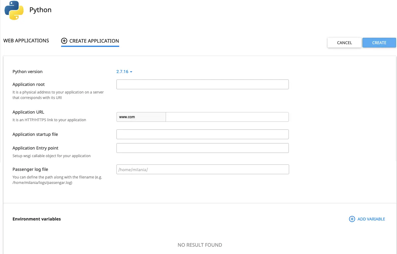 passenger_wsgi.py; - Application Entry point — WSGI callable object for your application (optional). Default is