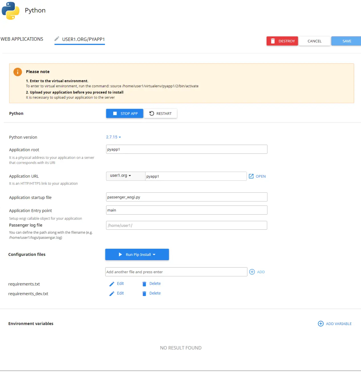 NB! Do not use "python37", "python38", "python311" (i.e. "python{version number}") as names for your applications as this causes unexpected errors.